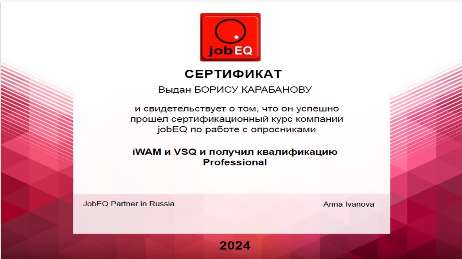 , , jobEQ, 2000 iWAM (Inventory of Work Attitude and Motivation), LAB Profile, 1980- .